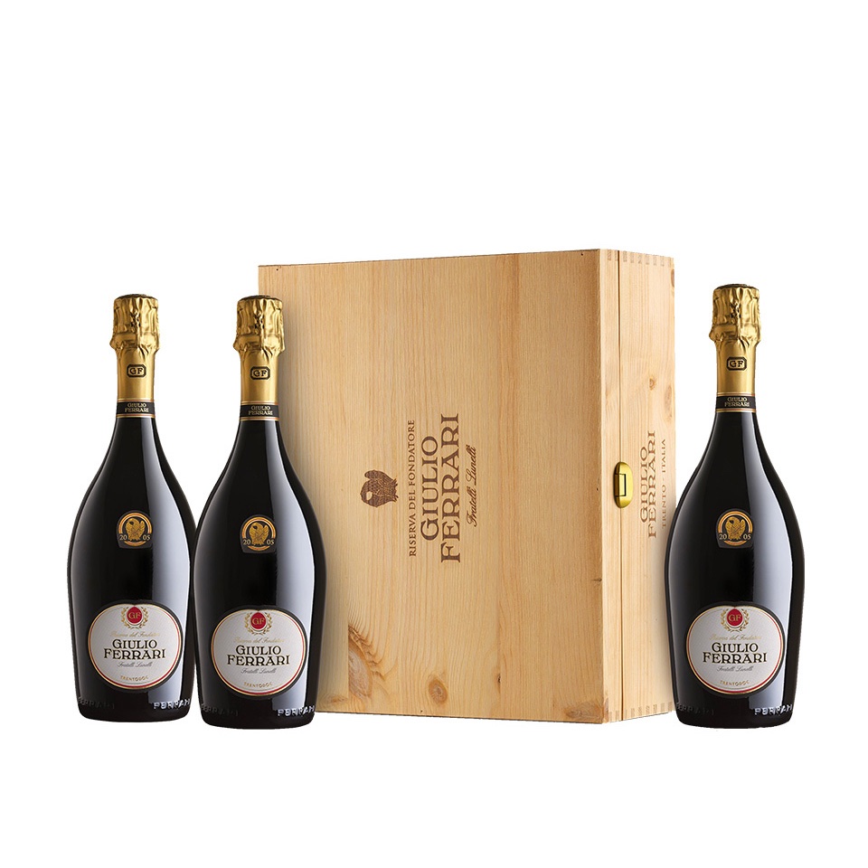 FERRARI GIULIO FERRARI RISERVA DEL FONDATORE 2009 CASSETTA DA 3 BOTTIGLIE – 0,75CL – BOX LEGNO